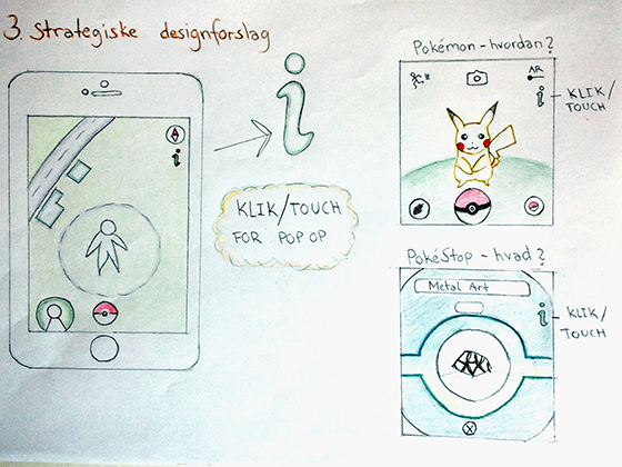 This bachelor project examined the opportunities and challenges that digital interactive media, and its new technologies, may contain. More specific, it concerns the worldwide free to play augmented reality game, Pokémon GO, which was dominant in the summer of 2016 and has resulted in both positive and negative user experiences. The knowledge established throughout the project period, including design elements of the game, its potential, and the user experience itself, resulted in four strategic design ideas with the aim of optimising the game. The design ideas should improve the user experience and ensure that the design takes ethical challenges into account: Hereby situations where users are absorbed by the game to such an extent that they are no longer able to follow their common sense. Examples of this includes users who play while driving, and thereby put others and themselves in danger, as well as users who play on private ground, and therefore do not respect the privacy of others.